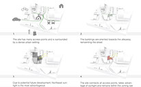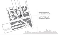 The objective of this project was to provide a mid-rise residential and commercial space that would compliment the colourful lifestyle of St.Clair Ave West in Toronto. Thus, combining multiple typologies allowed the creation of an urban setting where the contrast between the town homes and tower is evident through materiality and design, ultimately capturing the diversity of its site. The communal commercial space shares the two contrasting elements and is placed near the corner of Raglan Ave and St. Clair Ave, in order to enhance accessibility from the main street. The three town homes and tower are accessible from the alley, and face North. Their orientation takes advantage of Northeast sunlight and their views are protected from potential development.